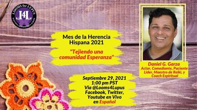 Join us Wednesday, September 29, 2021 at 1:00pm live via @Looms4Lupus's Facebook page. we continue the Series "Knitting a Community of Hope" dedicated to celebrate Hispanic Heritage Month which will be broadcast in Spanish! We are very proud to have the opportunity to highlight and celebrate our great friend Daniel G. Garza.
