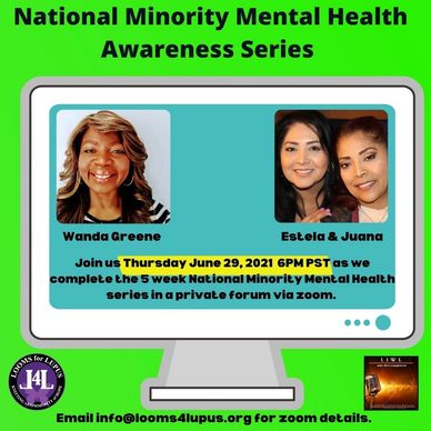 National Minority Mental Health Series with Looms for Lupus and Wanda Green creator of Laughter and Inspiration with Lupus Facebook Group